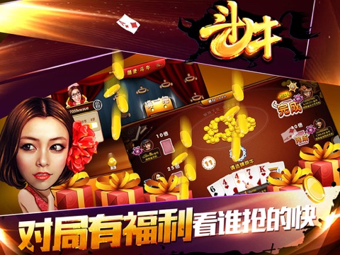 2016年史上最休闲的斗牛游戏震撼上线,诚邀您畅享游戏乐趣!万千牛牛玩家的首选之作,炫牌技夺荣誉,等你峰顶排行榜!随便玩斗牛(牛牛)多人在线斗牛游戏,单机省流量,经典玩法百人牛牛,看牌抢庄,1V1 PK对战等新奇玩法任你体验,还在等什么呢?一起疯狂斗牛吧!