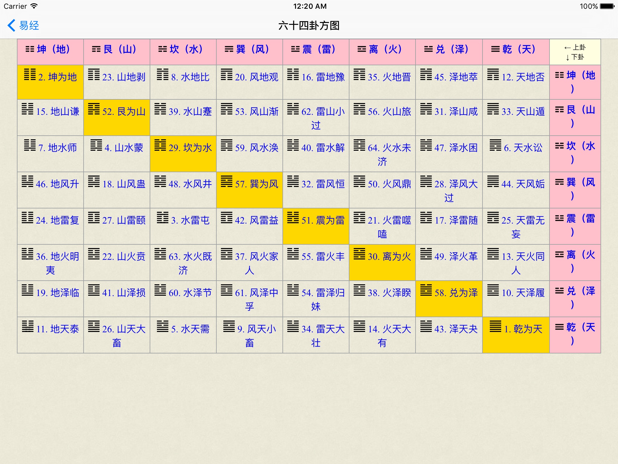 ▲ 可以点击六十四卦方图上的卦名,直接进入相关章节。比实体书体验更好、更方便。
