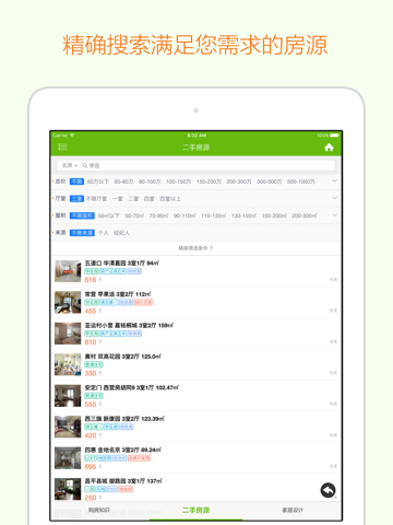 1、精准搜索你想要的房型,二手房、学区房、精装修、新开楼盘等等应有尽有。