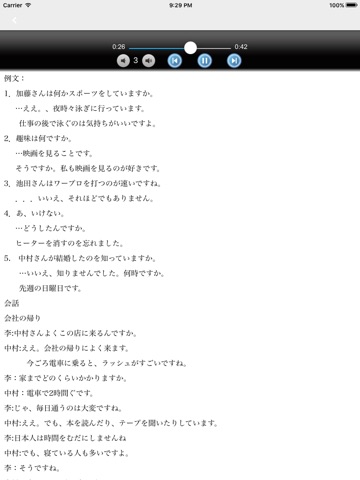 从『单字』进入,一路经过『文型』、『例句』、『会话』、『练习A』、『练习B』、『练习C』的过程,不需要动太多脑筋,教材已经做了最详尽的安排,循序渐进学习,自然水到渠成。
