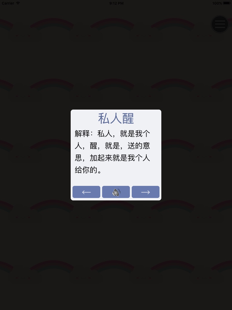 That is a game about cantonese,when you pass a level you can get the explain and a example of how to use it.And the audio of the example.