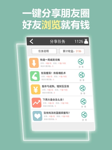 分享赚钱,开启全民天天赚钱新模式。每天手指点一点,一年可赚大几千。