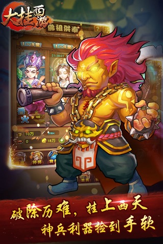 玄幻的西游背景,多选择的神将转职路线、自由的阵容搭配,尽在你掌握之中。二十四小时无间断自动战斗,酷炫的技能特效,带你踏上不一样的西行之旅!