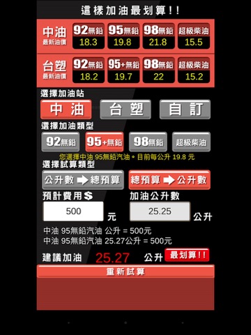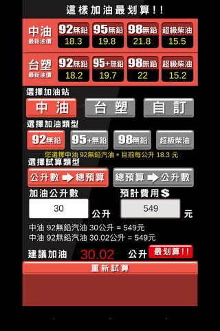 簡單操作即時算出要加多少油是最划算的!