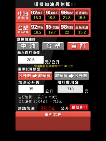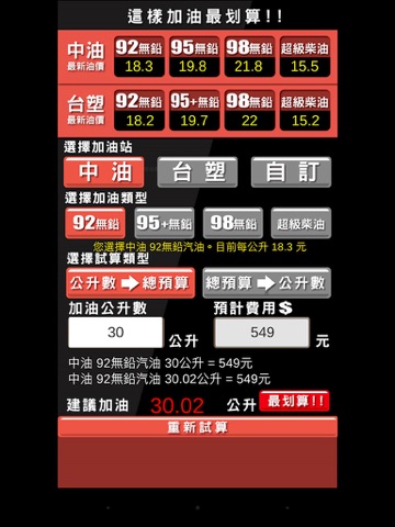 -即時油價公告 (中油、台塑,也可以自訂油價計算)