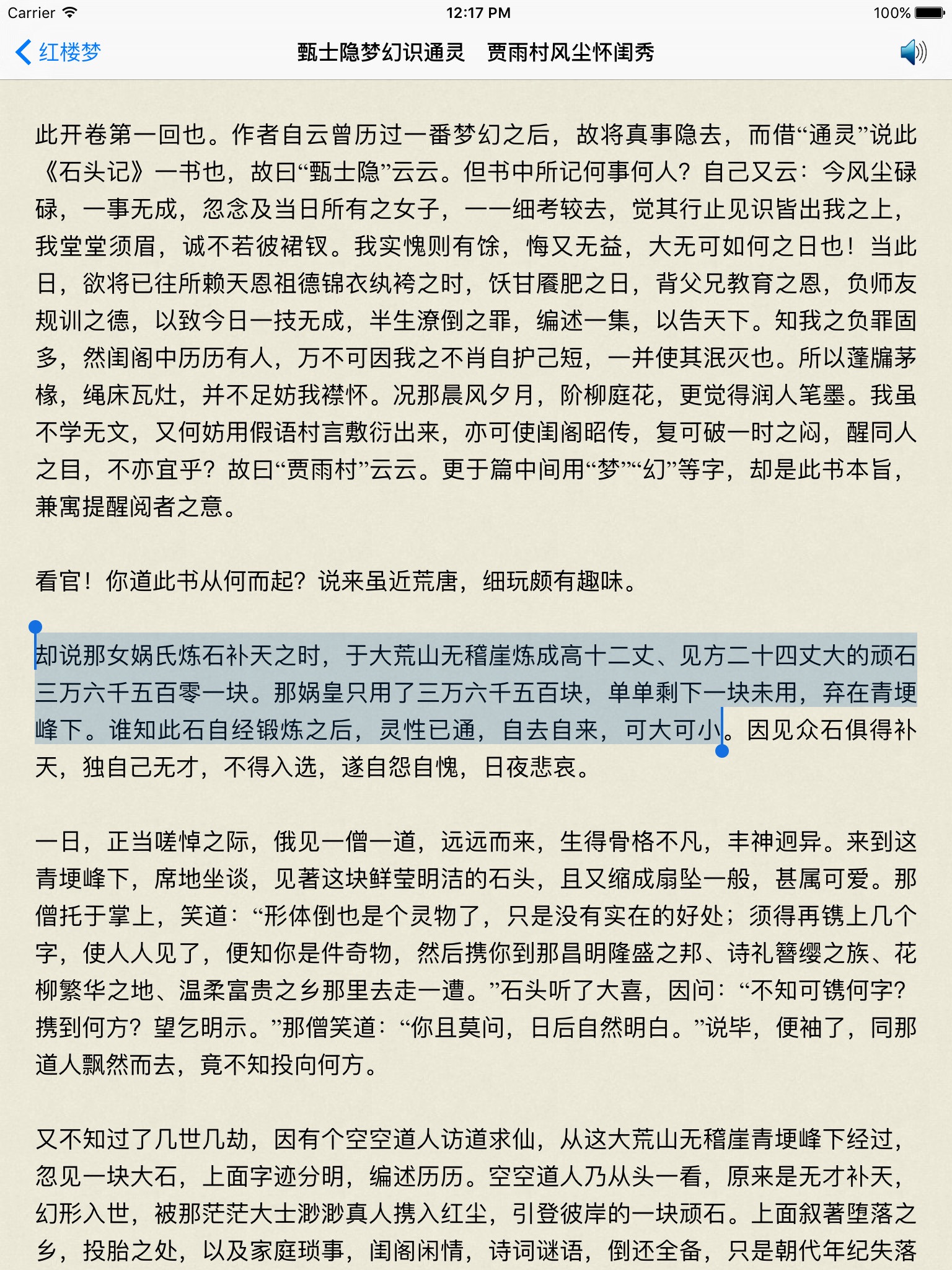 点击右上角的喇叭则阅读选定的文本,不选定文本则阅读全文。再点击喇叭则停止声音。