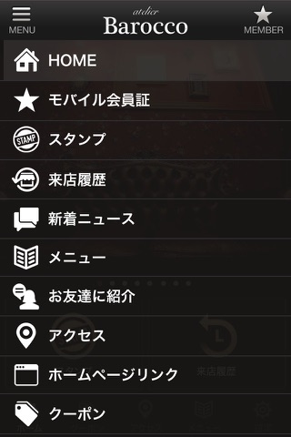 このアプリでは、【atelier Barocco】の色々な情報やアプリユーザー限定のお得なサービスが手に入ります!