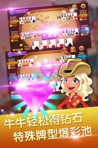 最全最欢乐的牛牛玩法,界面精美流畅、游戏上手简单;万人在线,聊天交友一样不落,让你在这个冬日不再孤单!趣味无限欢乐升级,超越所有传统牛牛,让你体验最刺激的斗牛玩法,享受最痛快的棋牌对战!