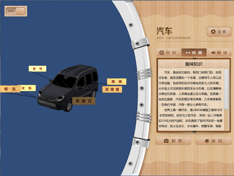 探秘交通世界是一款儿童知识百科图书APP,通过AR及三维实时渲染等技术,让3D交通形象栩栩如生地展现在图书里,并配知识讲解及分部知识介绍。在“探秘交通世界”里,小朋友们不仅可以享受到3D互动的乐趣,还能从中学习到很多 有趣的知识,如:火车,汽车,轮船,飞机等,小朋友们可以在丰富的互动体验中潜移默化地 学习到知识。相信这款应用一定会让小朋友们爱不释手,更能给家庭亲子互动增添无比的乐趣。