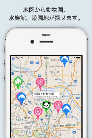 Google Mapから簡単に動物園・水族館・遊園地が探せるアプリとなっています。