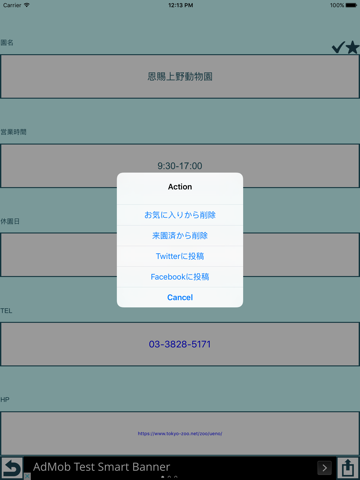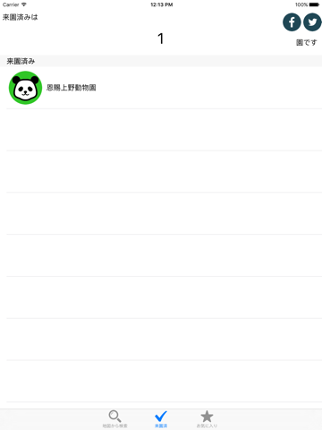 行ったことのある園やお気に入りの園を登録したり、twitterやFacebookに投稿したりできます。