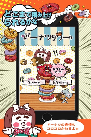 ドーナツを高くつんでいこう!!シンプルだけどなんか・・・はまってしまう。