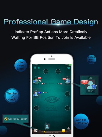 Perfect poker app to host your own home game and improve your skills. Brand-new Pineapple game; more professional player statistics; over 32 game settings&10 unique features; authentic poker tournament experience; secure, fair and professional social poker app; PokerFishS brings you the enjoyment of poker competition.