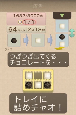 シンプルな操作で、つぎつぎ出てくるチョコレートをトレイに詰めましょう。