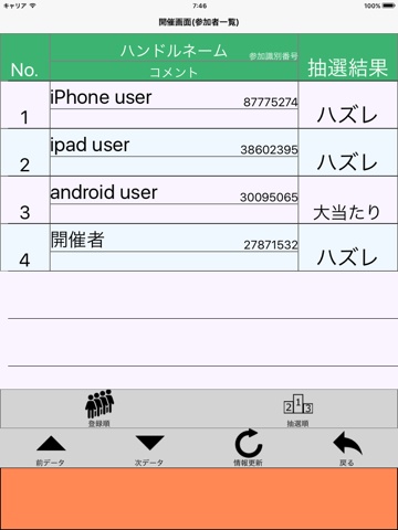 ※開催者は抽選実行前に確認し、適切でない参加者がいた場合は、キャンセル機能で除外することができます。