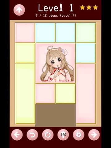 ピースを移動して、箱に閉じ込められている箱入り娘(箱娘)を外に出してあげると1面クリアです。