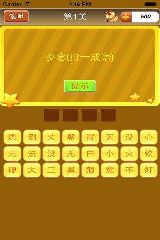 全民疯狂猜成语是一款休闲益智游戏,它是综合了成语谜语、单字谜语于一体的游戏,他会带你进入谜语解谜的快乐世界中,在日常生活中,在休闲的时候,既可以享受成语多玩法的乐趣,还能学到知识,增长学问,提高记忆!是一款不可多得的休闲益智游戏!想要获得更多的生活趣味就来“全民疯狂猜成语”!