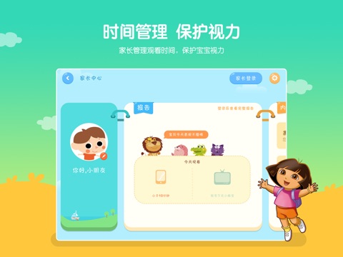 3、家长中心:家长可管控孩子的观看内容和观看时长,并保护视力