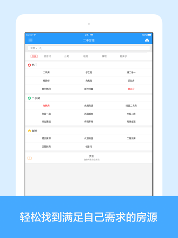 1、精准搜索你想要的房型,二手房、学区房、精装修、新开楼盘等等应有尽有。