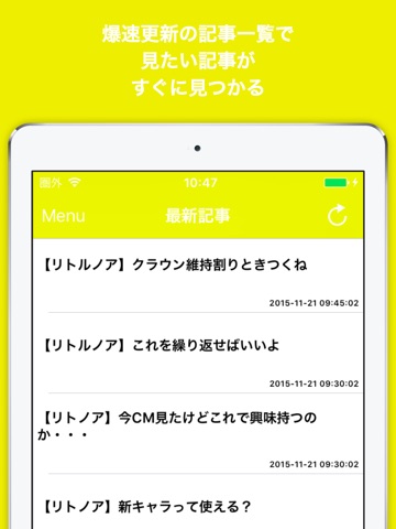 1タップの超簡単操作で最新のリトルノアニュースがサクサク閲覧可能!