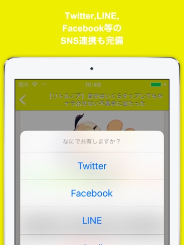 Twitter, Facebook, LINE等のソーシャル連携も万全!どんどんシェアしよう!