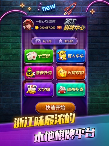 各类棋牌游戏,支持双扣、十三水、斗牛牛、德州扑克、比赛,玩法任君选择