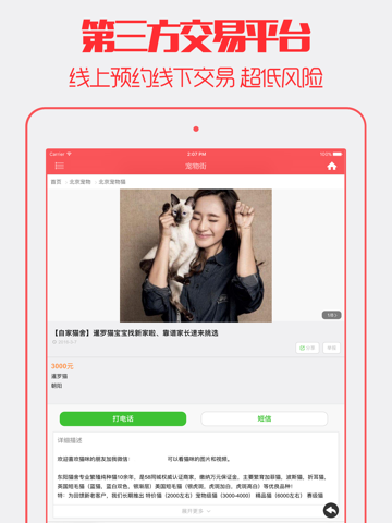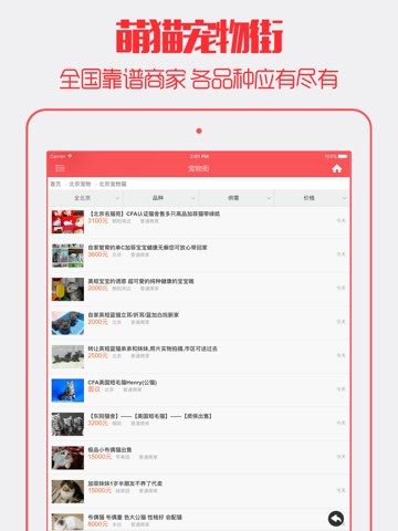 · 猫狗市场,众多宠物交易信息,支持多分类查找,覆盖全国