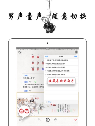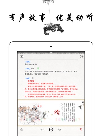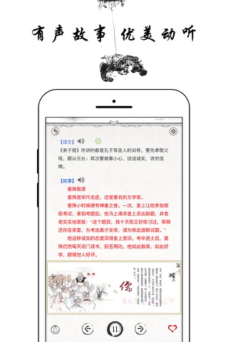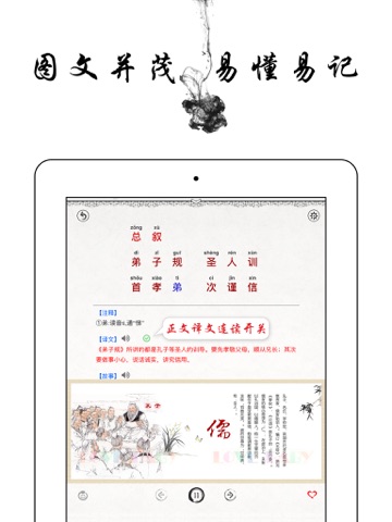 ○ 励志故事:为了能更好地学习这部文化经典,特别提炼了《弟子规》中的人物典故 “90个励志小故事”。