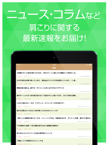 さまざまなサイトから配信される肩こり解消の話題をまとめてチェックできます。