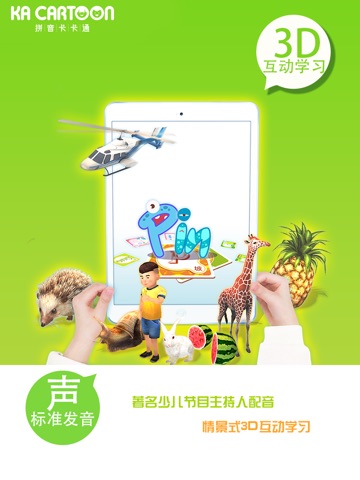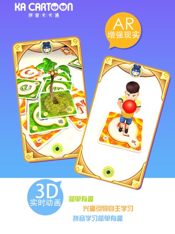 首先进入主菜单中的“拼音”选单;然后将摄像头对准印有图案的卡片,相应的拼音就会出现在卡片上,通过点击拼音,就会出现3D动画模型,可以通过旋转卡片来观察3D模型的多种角度;同时还可以通过触摸屏幕来触发部分简单互动效果。