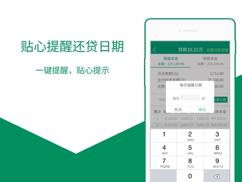【还贷日期提醒】设置还贷日期提醒,每月提示还贷额,帮你轻松记账理财。