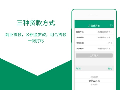 【三种贷款方式】商业贷款、公积金贷款、组合贷款,三大贷款方式,一网罗尽,只需填写相关信息,即刻获得计算结果,轻轻松松当安居客。