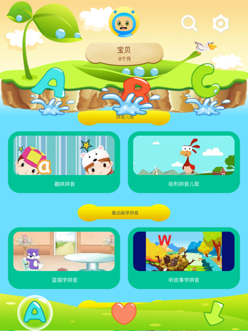 例字、拼读、儿歌都可以点击发音并配有动画,方便跟读和记忆拼音。