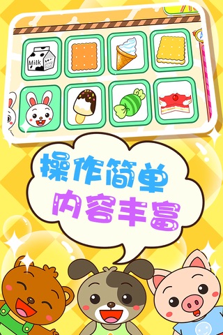 这是一款非常好玩儿而且有用的儿童记忆锻炼游戏,画面优美配上欢快的音乐,让您的宝宝快乐玩儿游戏,轻松练记忆。媲美宝宝巴士,贝瓦儿歌,小伴龙,熊猫博士的儿童游戏。