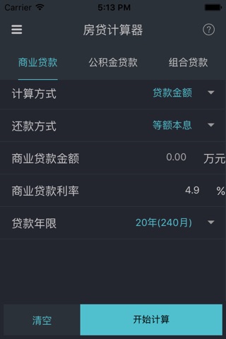 2.支持业贷款、公积金贷款、混合(组合)贷款三种贷款类型