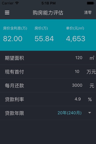 3.支持贷款金额、住房面积(单价,面积,首付成数)两种计算方式
