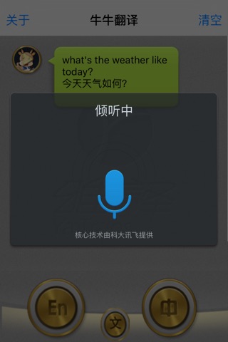 2、牛牛翻译采用小牛翻译(NiuTrans)引擎技术,目前本系统已经实现了语音输入/输出的英汉双向实时自动翻译功能。