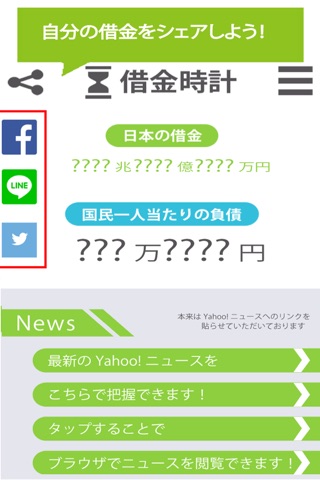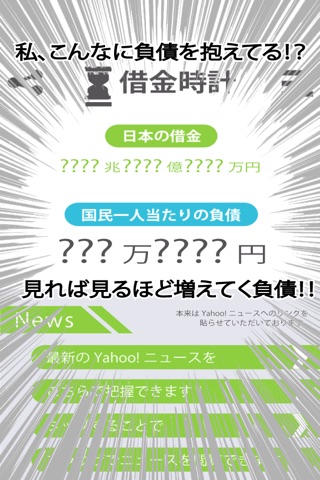国の借金とそれを総人口で割った国民一人あたりの負債額を確認できるアプリにしました。