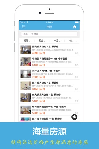 1、精准搜索你想要的房型,整租、单间、精装修、带阳台等多种条件都能满足你。