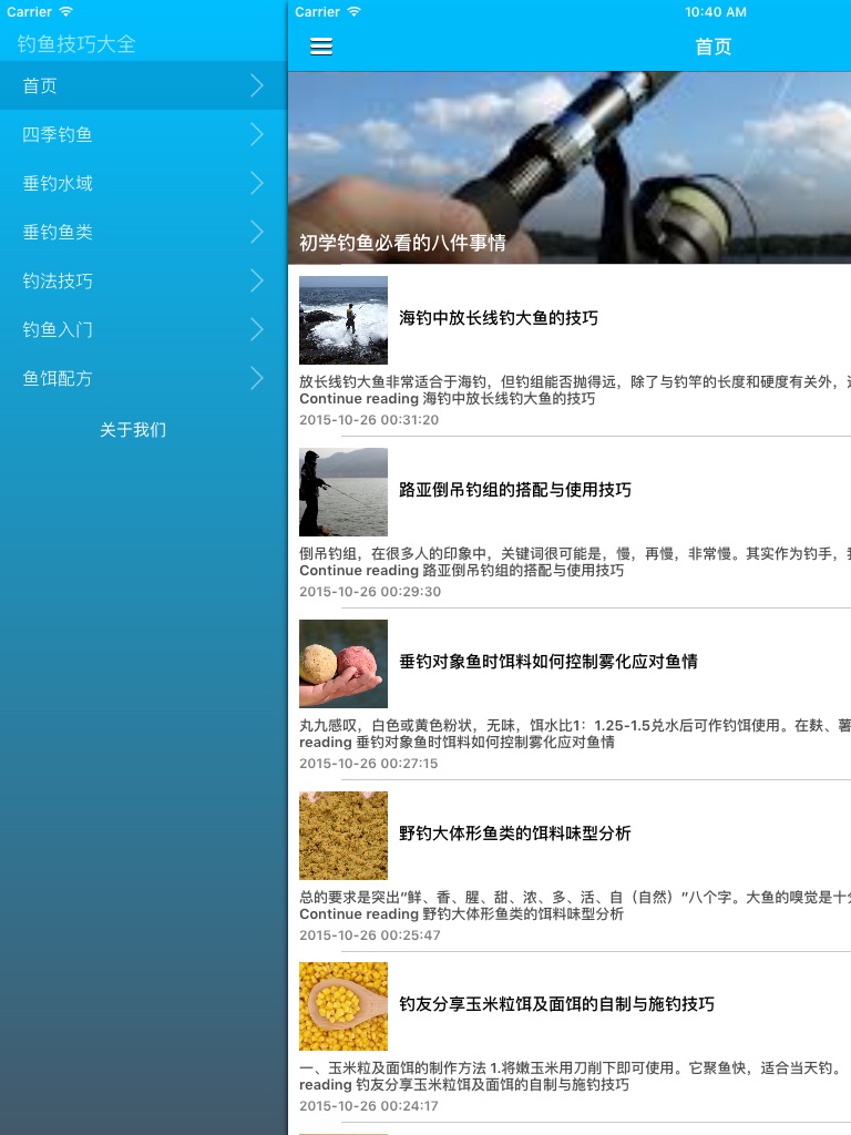 分享大量垂钓高手的实战经验,总结宝贵的垂钓必备知识,帮你梳理杂乱无章的垂钓流程,绝技循序放送,让垂钓有序自在,为每位垂钓爱好者成为内行提供帮助。