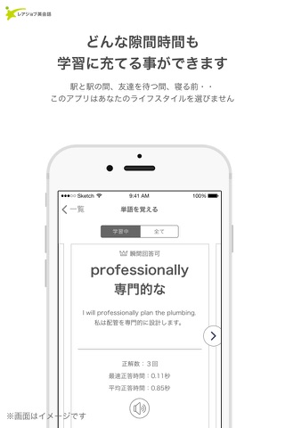 最短10秒以内の学習時間!駅と駅の間・友達を待つ時間・寝る前、時間を選ばず英単語を学習する事ができます。