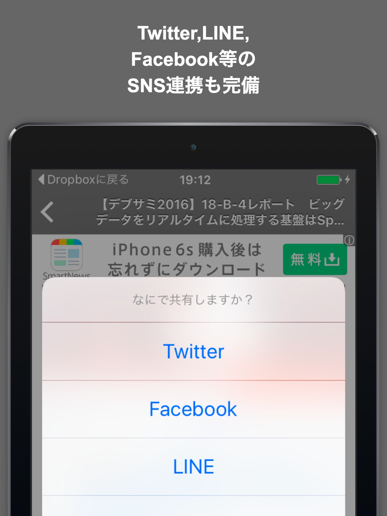 Twitter, Facebook, LINE等のソーシャル連携も万全!どんどんシェアしよう!