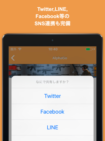 Twitter, Facebook, LINE等のソーシャル連携も万全!どんどんシェアしよう!