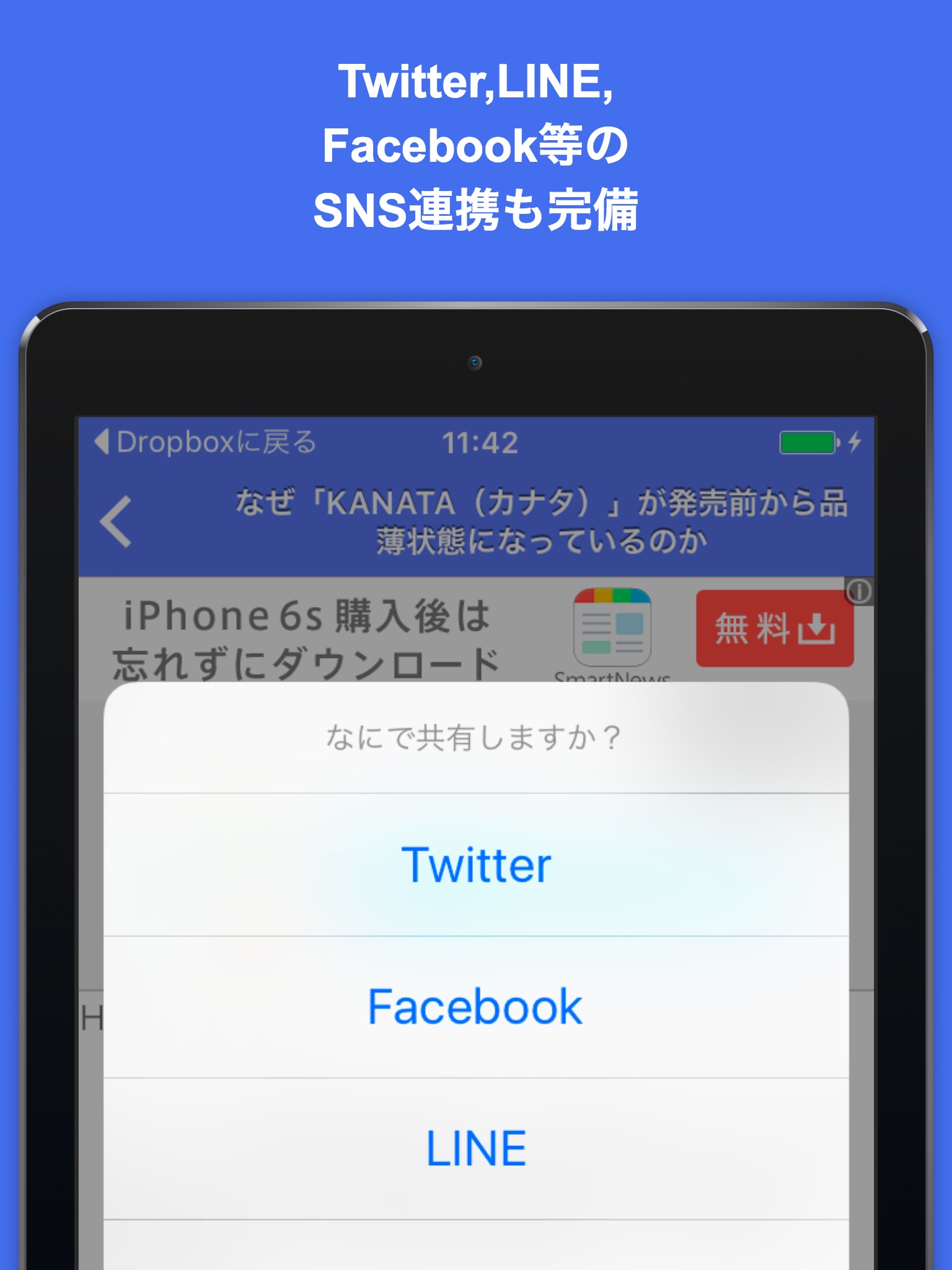 Twitter, Facebook, LINE等のソーシャル連携も万全!どんどんシェアしよう!