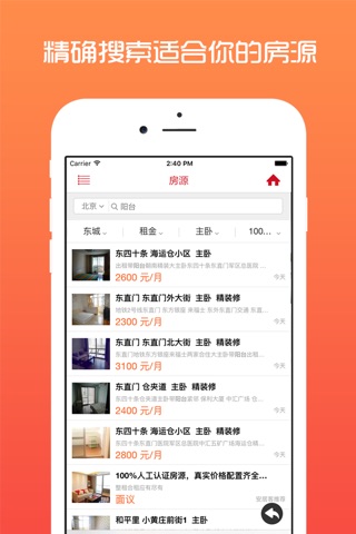 1、精准搜索你想要的房型,整租、单间、精装修、带阳台等多种条件都能满足你。