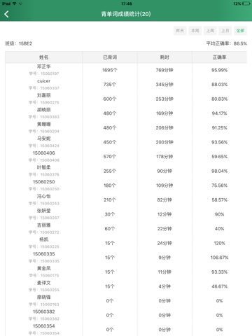 3、班级统计:支持统计背单词、听写训练和答题练习统计