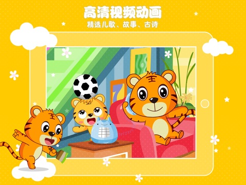 1、内容丰富:精选儿歌、故事、古诗等内容制作成高清视频动画