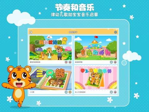 儿童益智快乐成长,《躲猫猫》《奇妙动物园》《我有只泰迪熊》《保持干净很重要》《快乐音乐家》《形状变变变》等。