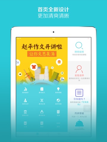 由高考命题组人员,人大附中、北京四中、黄冈中学、新东方、学而思、学大等老师、超级学霸分享学习,备考经验及搜题答题方法,精选优质高考英语、高三数学、语文、物理、化学、生物、高考政治、地理、历史9大微课视频课程,针对高考一轮备考、二轮提分、三轮冲刺、考前模拟、文综理综命题趋势提供指导,最新2015高考真题讲解、课后作业帮解题、真题库演练,2016高考文综、理综备考指南。科学提分,助您走进学校。清华北大学校状元与你一起分享在线学习备考,助你争当学霸君。