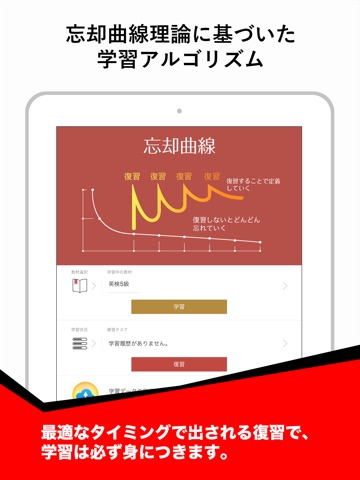 「忘却曲線理論」に基づいた、復習を重視した効率学習。最適なタイミングで出される復習で学習は必ず身に付きます。